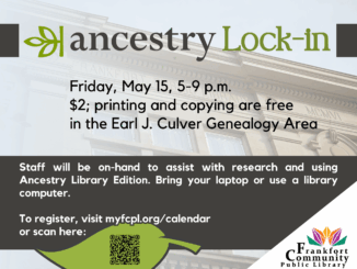 The Frankfort Community Public Library is holding an Ancestry Lock-in in the Earl J. Culver Genealogy Area on Friday, May 15 from 5 to 9 … [FULL STORY]