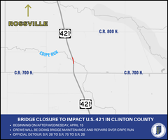• [ April 13, 2026 ] INDOT Announces Closure of U.S. 421 Bridge Over Cripe Run Through August Local News