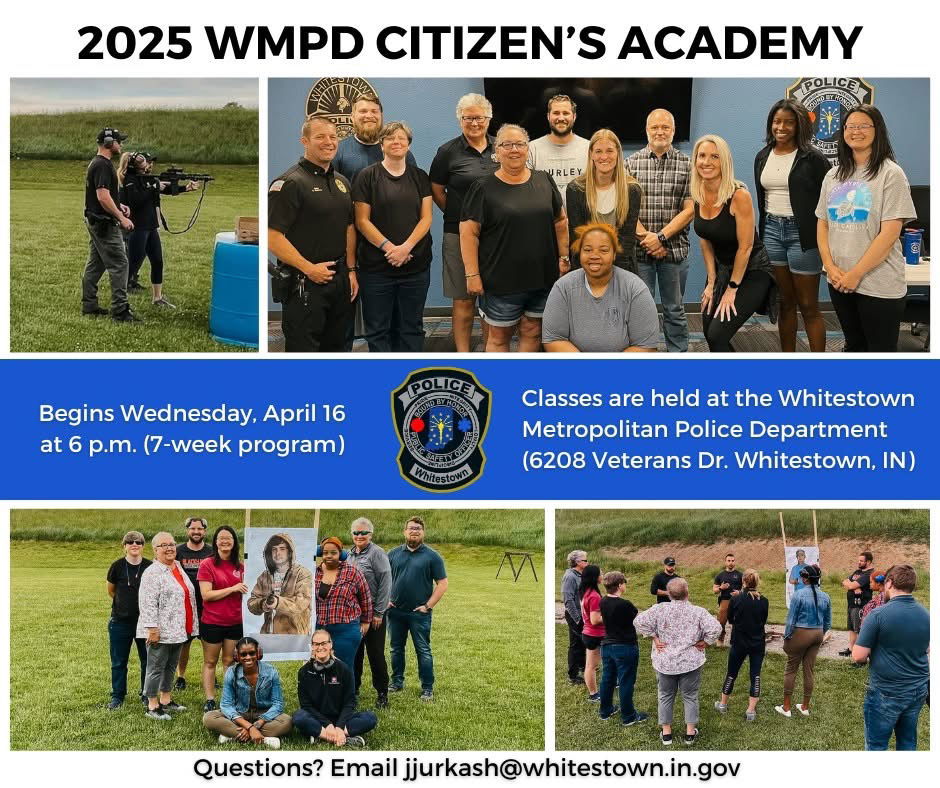 The Whitestown Metropolitan Police Department has announced that the 2025 Citizen Academy is now accepting applicants prior to the start date of April 16.