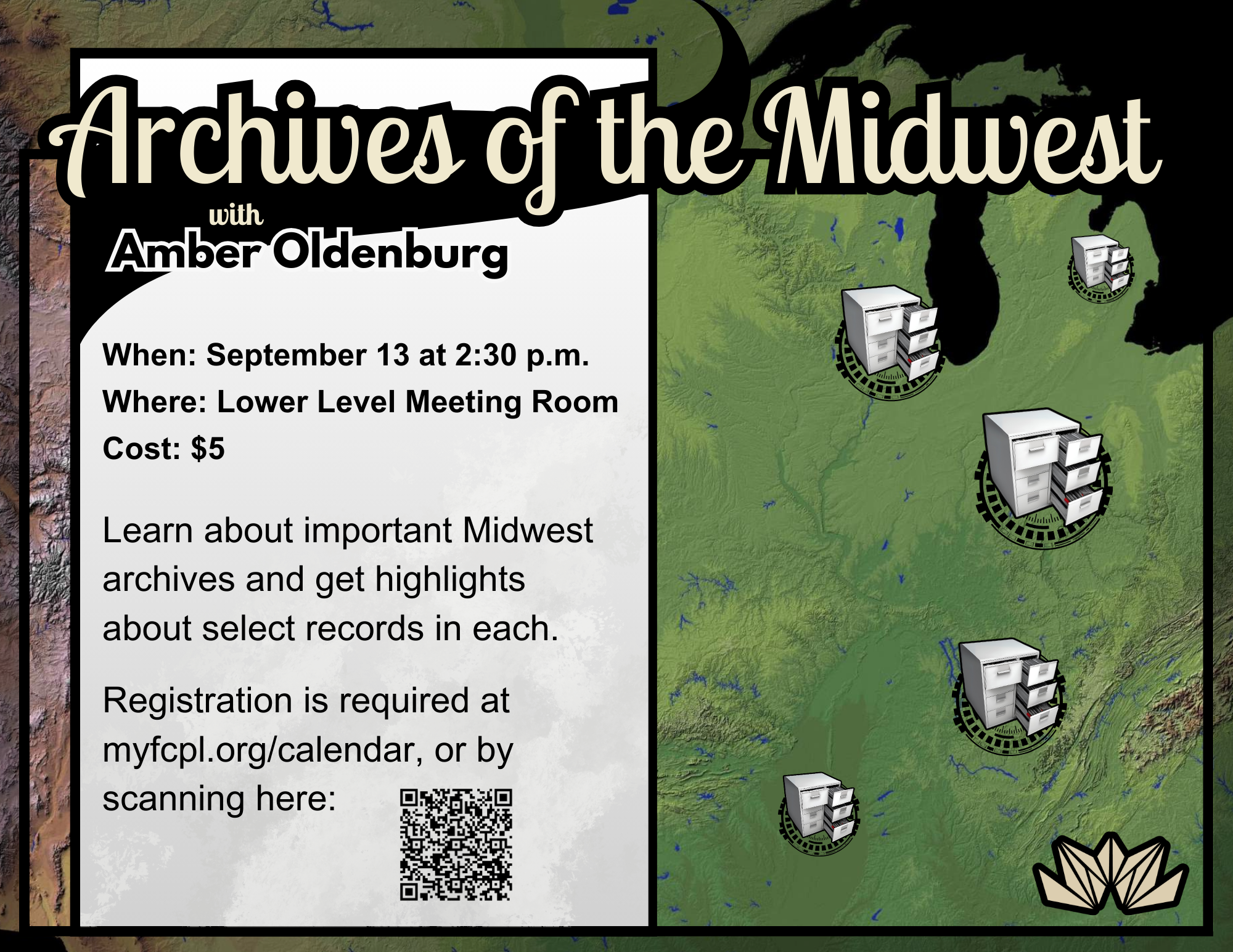 Amber Oldenburg’s presentation, “Midwest Archives: Worthy of More than Just a Flyover,” on September 13 at the Frankfort Community Public Library has been canceled. The Library plans to reschedule the program for 2026.