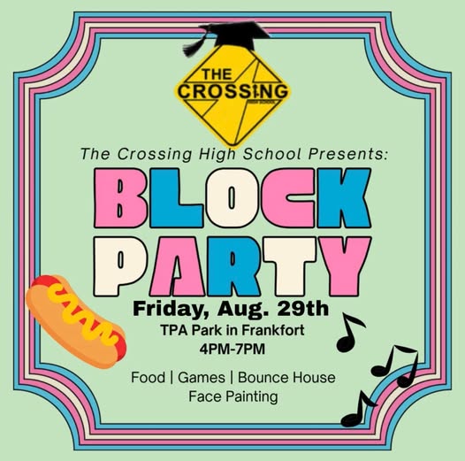 Get ready for an evening of fun and community. Join The Crossing at TPA Park in Frankfort for a lively Block Party on Friday, August 29, from 4 p.m. to 7 p.m.