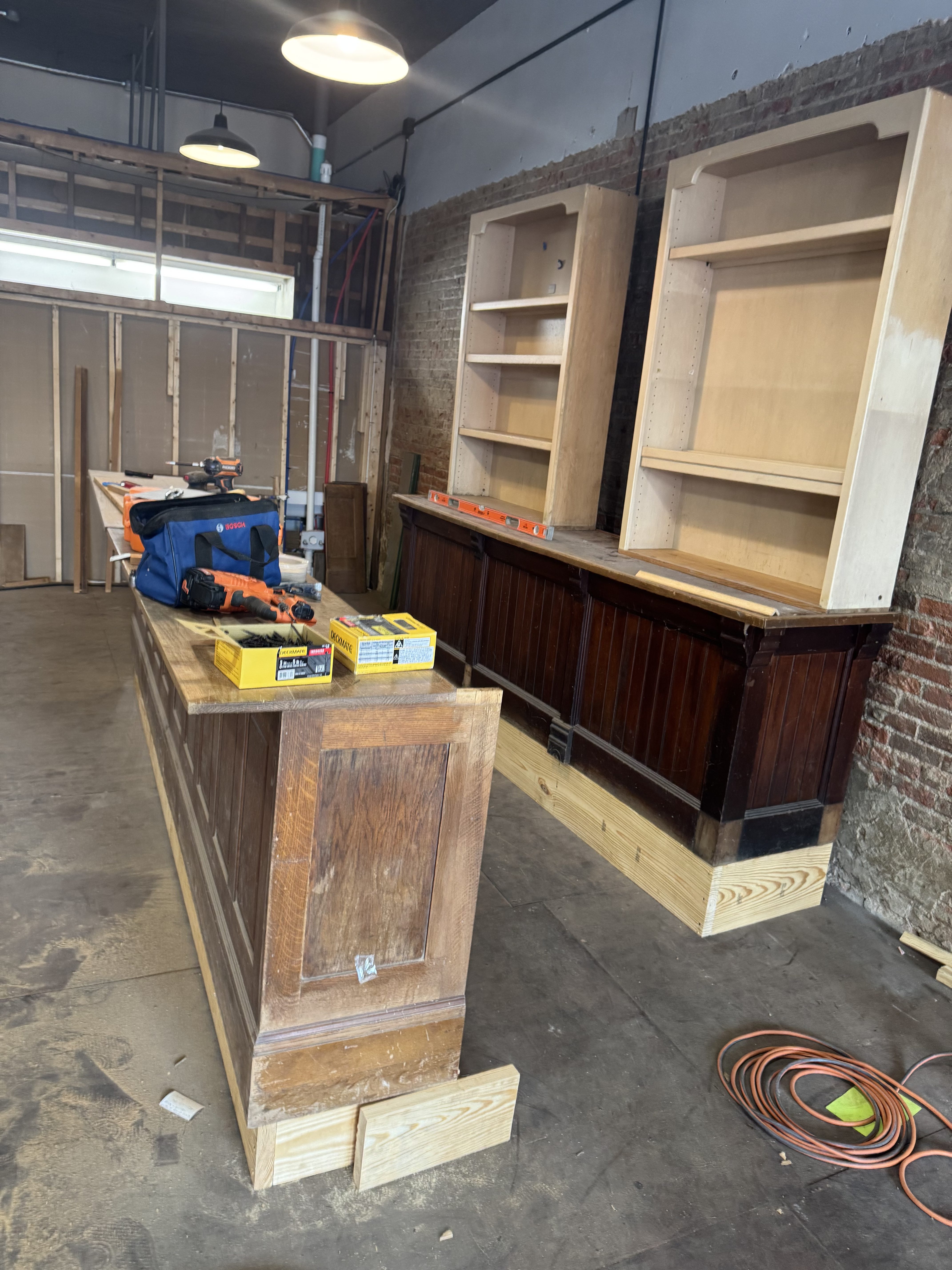 Progress of the bar being built inside Bookers, courtesy of Jennifer Bowman: