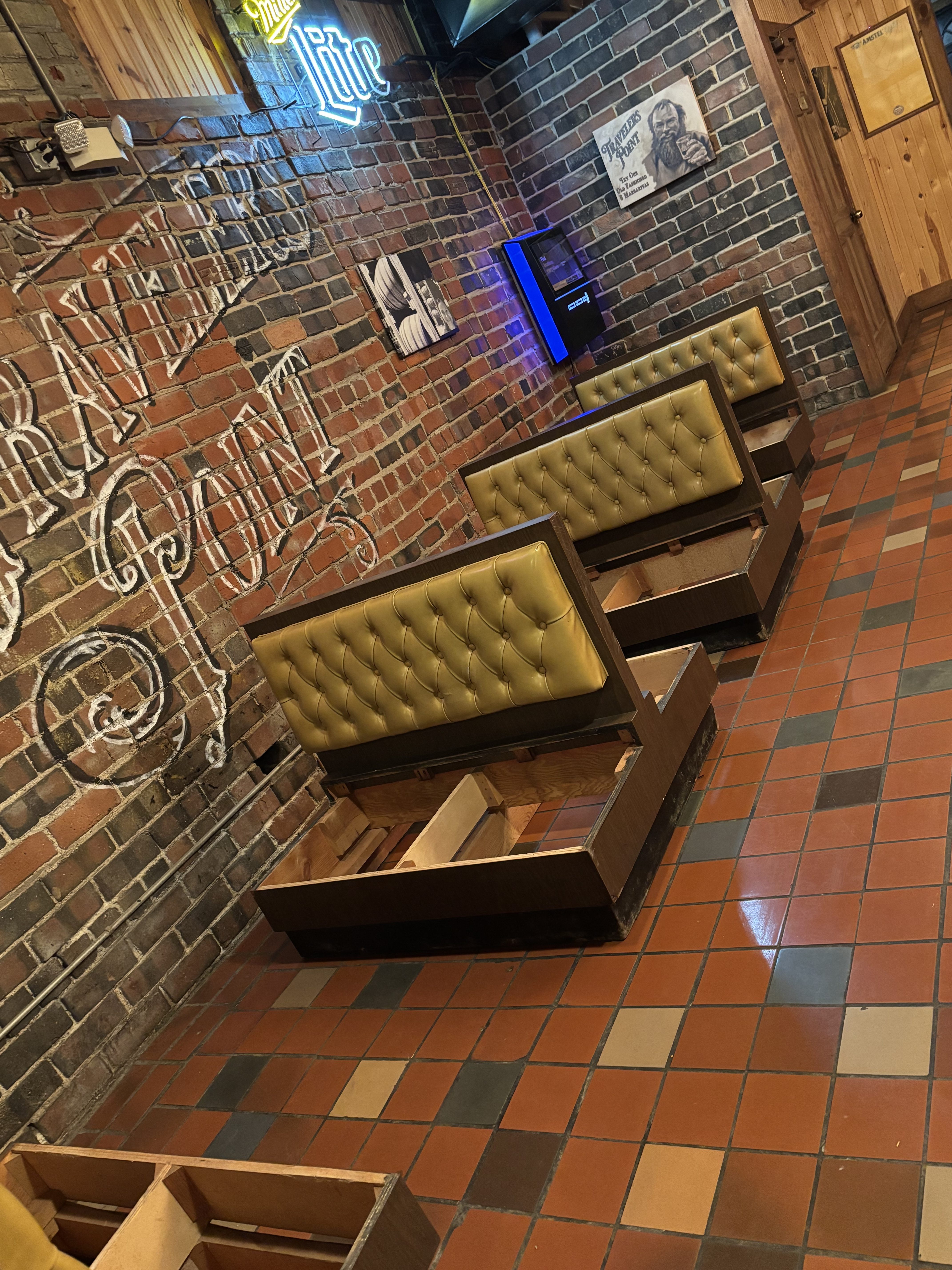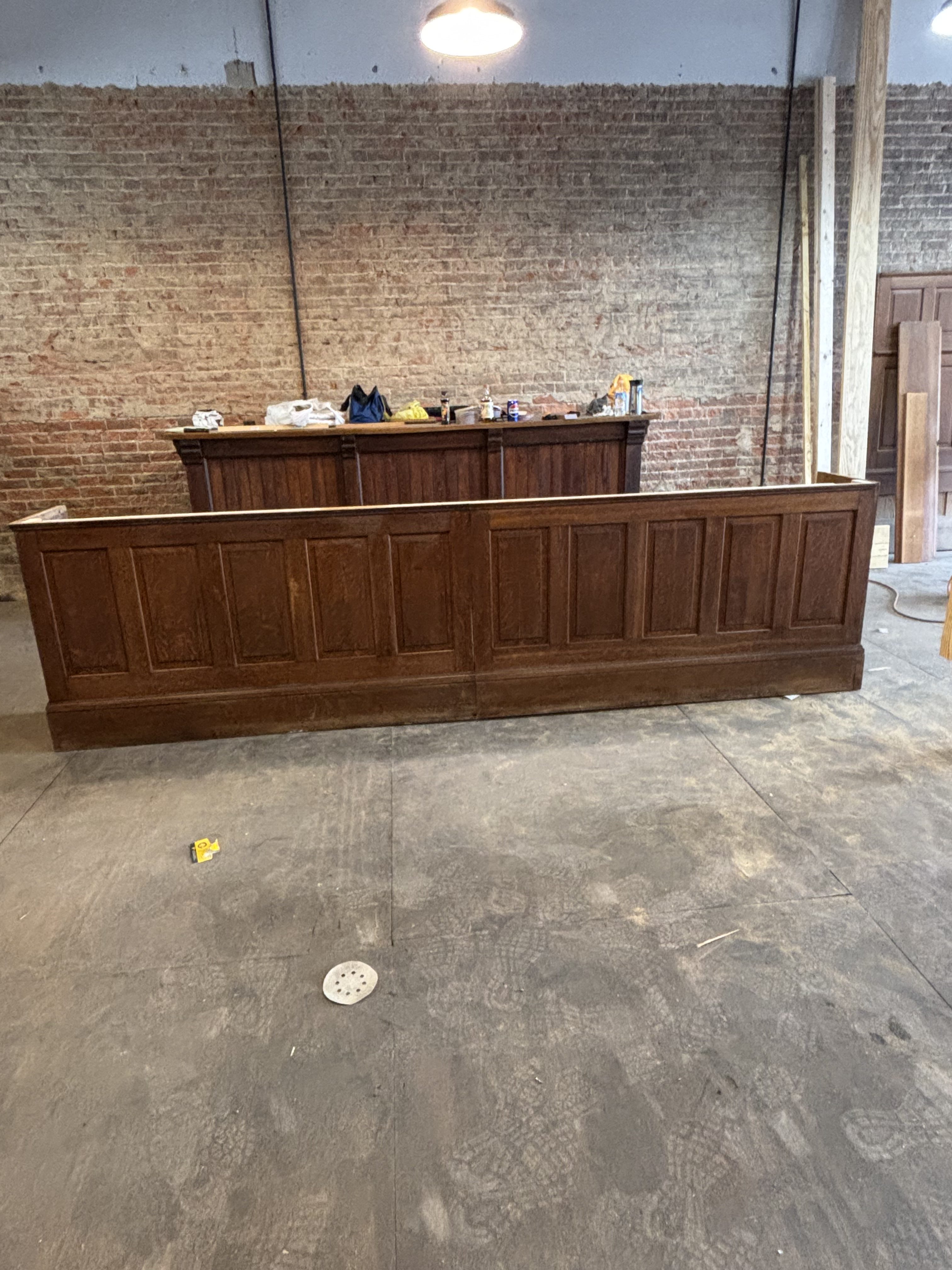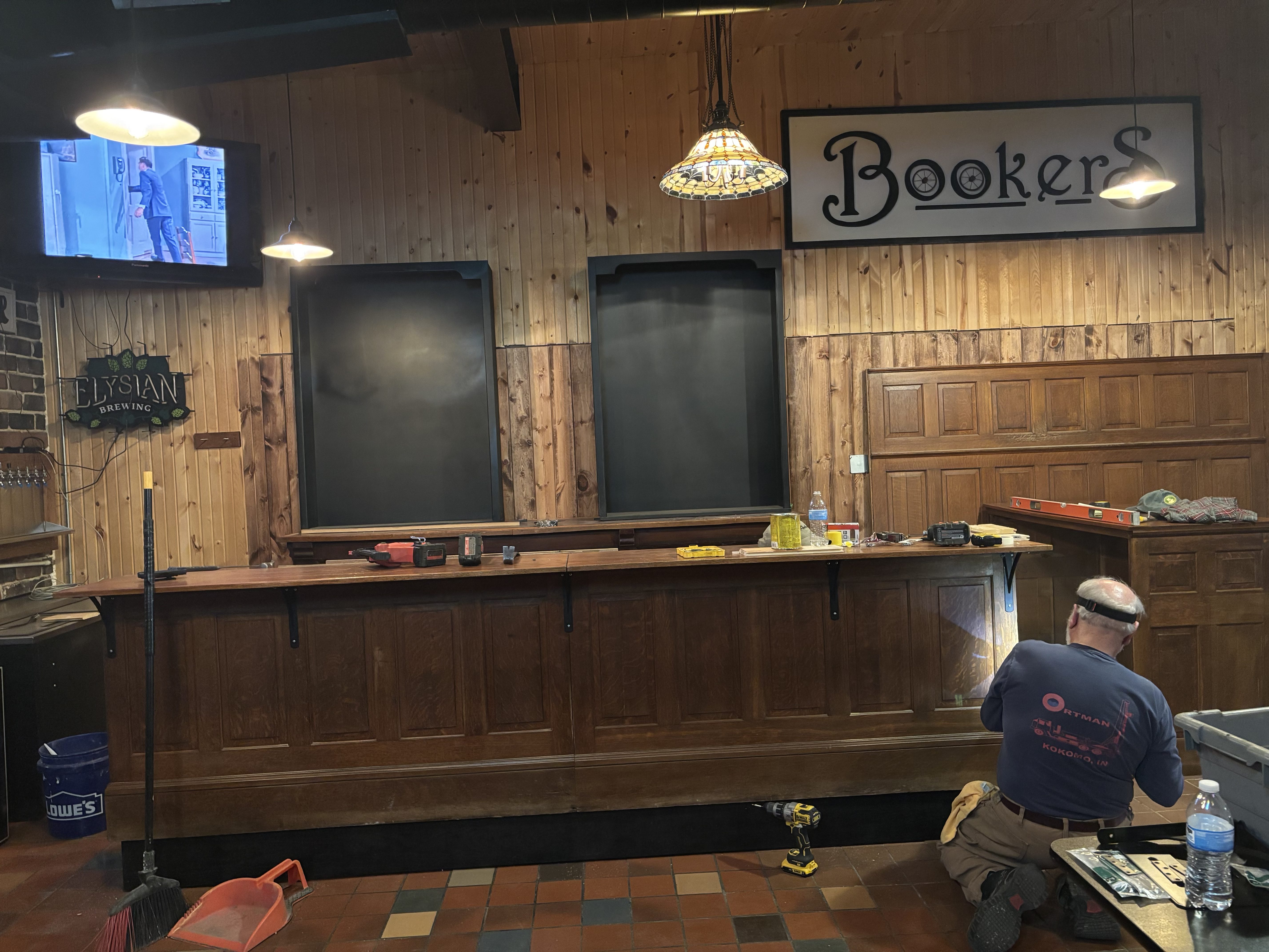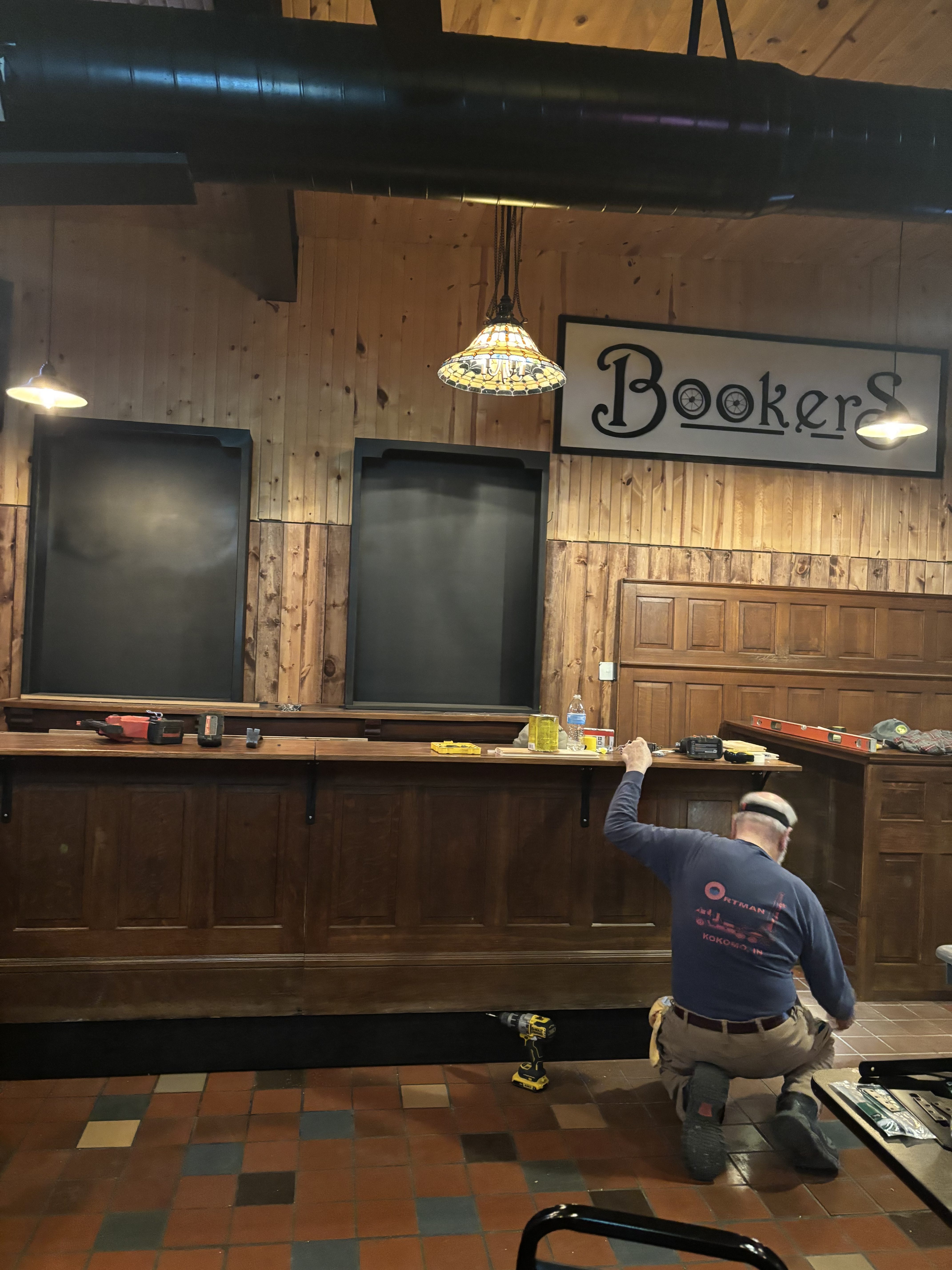 After finding the pieces of the Honorable Kathy Smith’s bench in storage, Bookers Owner Jennifer Bowman made the decision to give Bookers’ old bar to the proprietors moving in next door in Kirklin with the dream of renovating the bench into a new bar for her own restaurant.