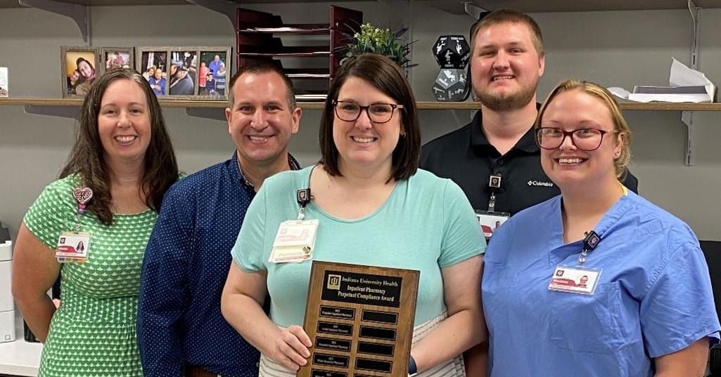 With several IU Health pharmacies scoring in the high nineties on the assessment, this year’s competitors for the award were boasting high performances, but the Frankfort Hospital Pharmacy scored the highest, which earned the team the 2024 Top Hospital Pharmacy Performance Award.