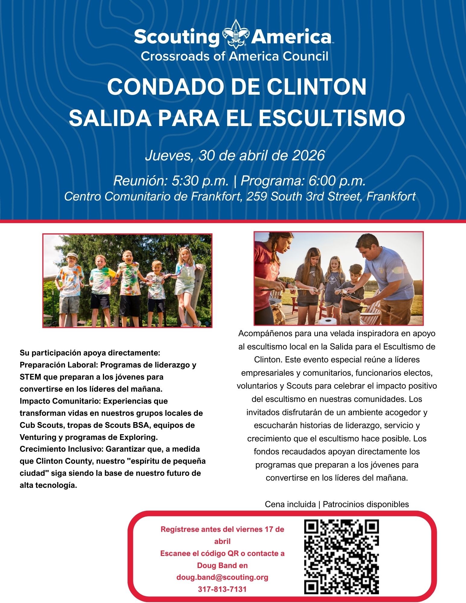 Proceeds from the special event directly support local Scouting programming within Clinton County, preparing youth to become the leaders of tomorrow. Funds raised ensure that every child who wants to participate in Scouting can do so, experiencing meaningful mentorship and discovering the values of teamwork, responsibility, service, and resilience. These skills prepare them not just for the outdoors, but for life.