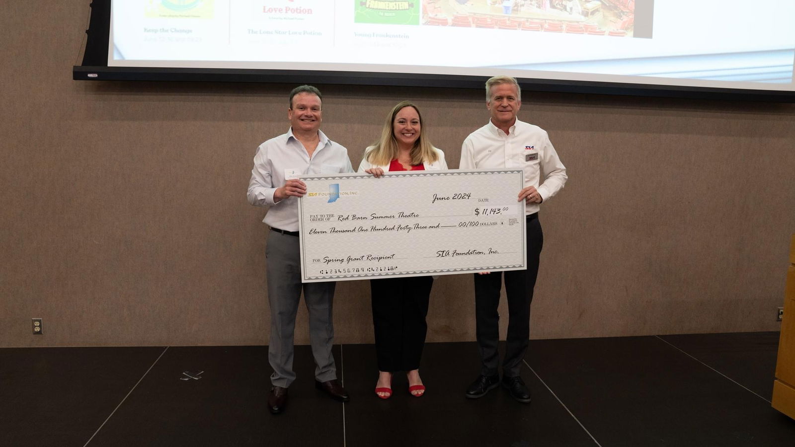 The Subaru of Indiana Automotive Foundation, known as the SIA Foundation, presented the Red Barn Summer Theatre in Frankfort with a grant totaling just over $11,000 for its Spring Grant Cycle.