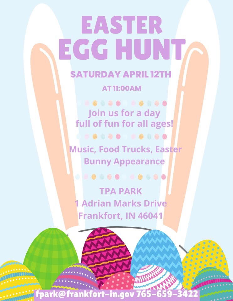 The Frankfort Parks Department has announced the upcoming Easter Egg Hunt set for Saturday, April 12 for community members to enjoy an Easter celebration with the entire family.