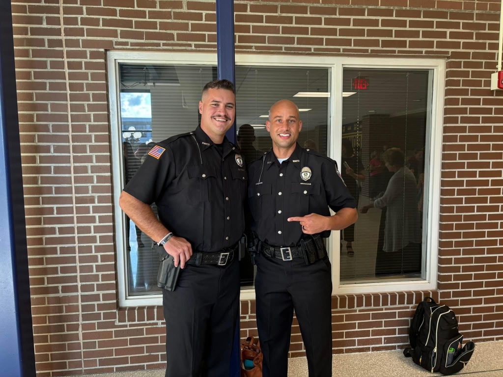 Officers Tyke Cockerham and Joey Crider were celebrated on Friday evening following their graduation from the 16-week Indiana Law Enforcement Academy where they studied and were tested on various topics in the field of law enforcement, including criminal law, traffic law, firearms, emergency vehicle operation, defensive tactics, strategies and tactics of patrol stops, active shooter, standard field sobriety tests, report writing and more.